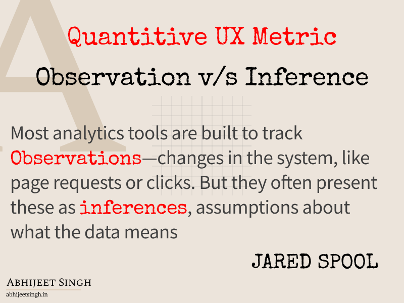 Most analytics tools are built to track observations—changes in the system, like page requests or clicks. But they often present these as inferences, assumptions about what the data means. For example: